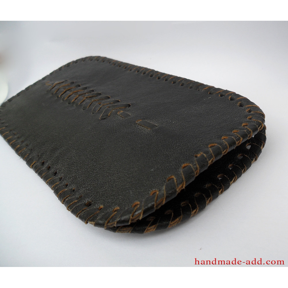 Handmade quality leather vintage black leather eye glasses case.
